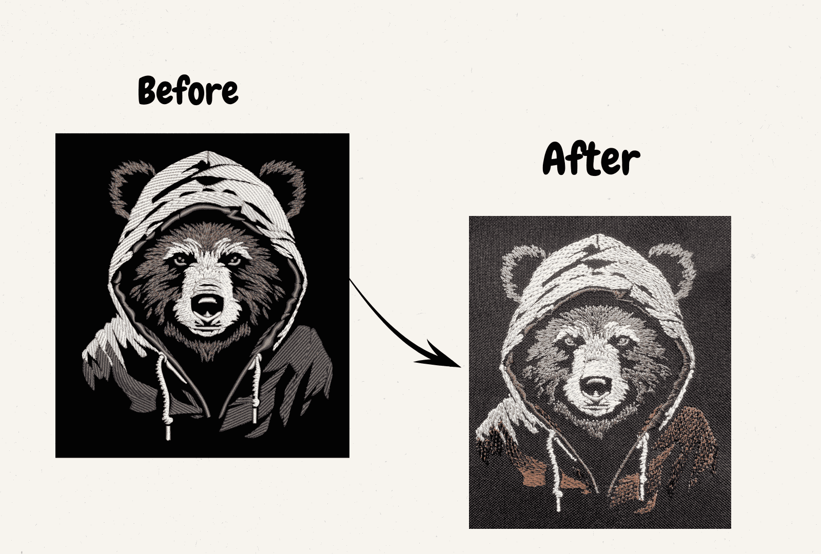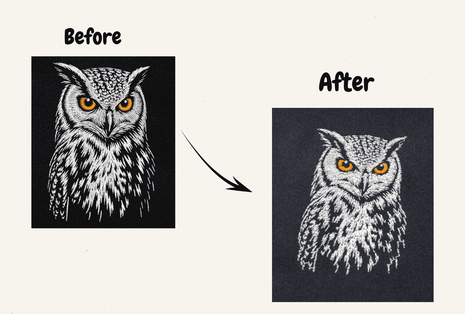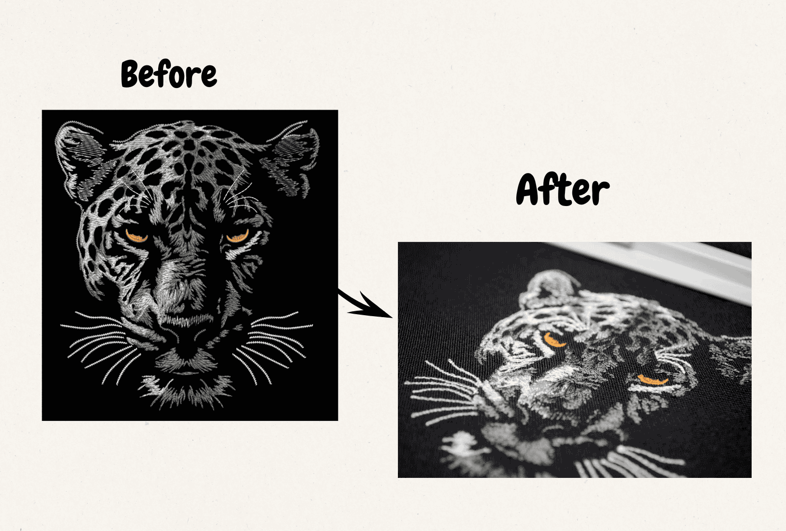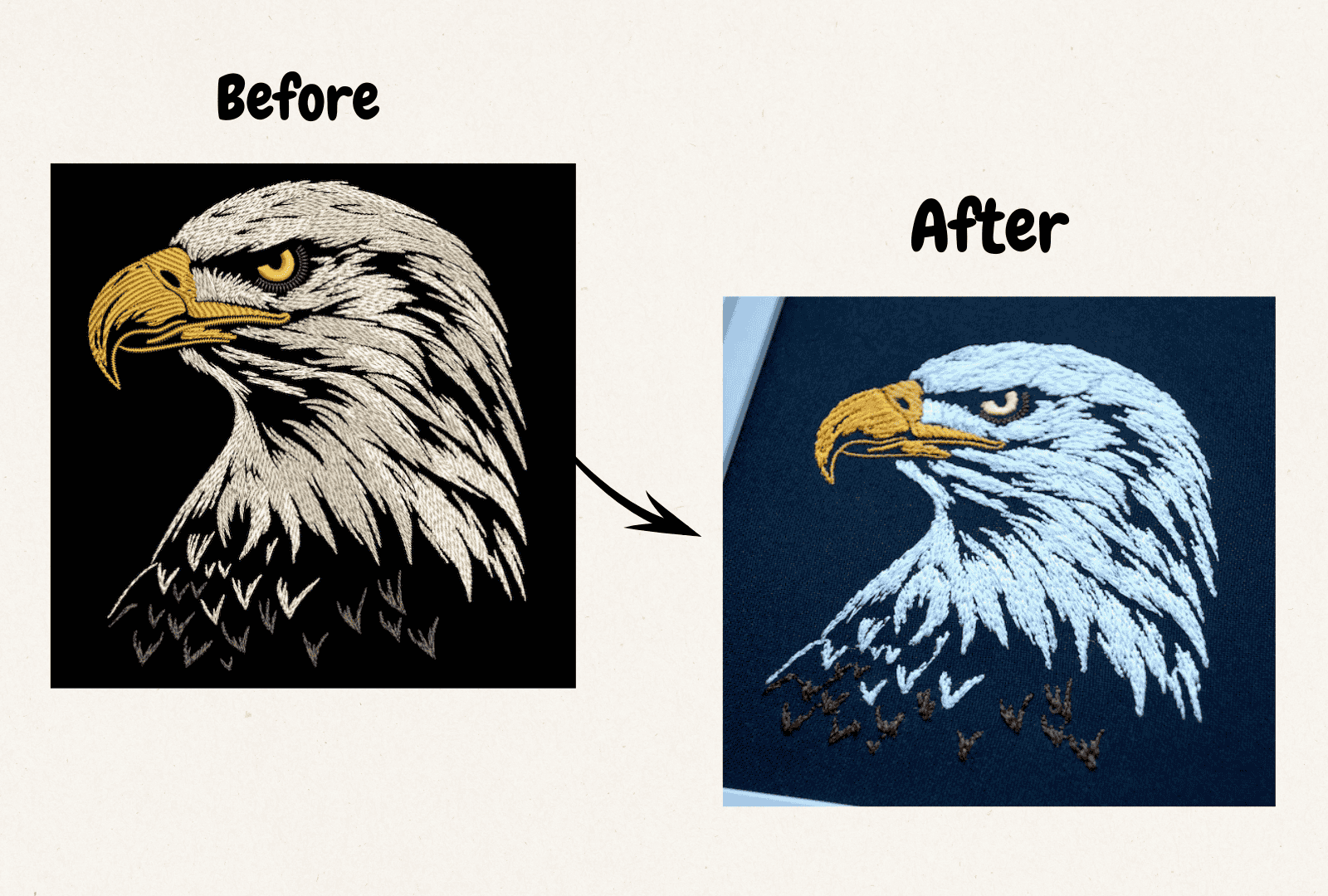 Turn your photos into detailed embroidery art. Our experts ensure every line and shade is captured beautifully for realistic results using the best digitizing services.